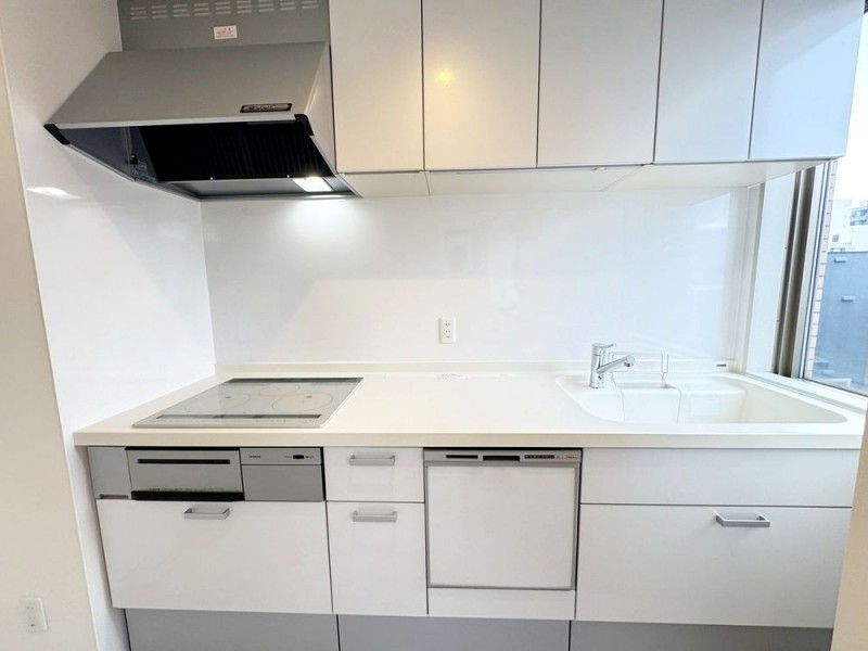 自然光が入る明るいキッチン。IHクッキングヒーター搭載でお手…