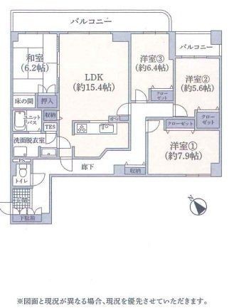 - その他:ユニットバス・シャワー・ダウンライト・LDK15畳以上・和室・収納スペース・クローゼット・押入・公営水道・バルコニー・複層ガラス・管理人日勤・IT重説・内装リフォーム済・都市近郊・市街地が近い・眺望良好・通風良好