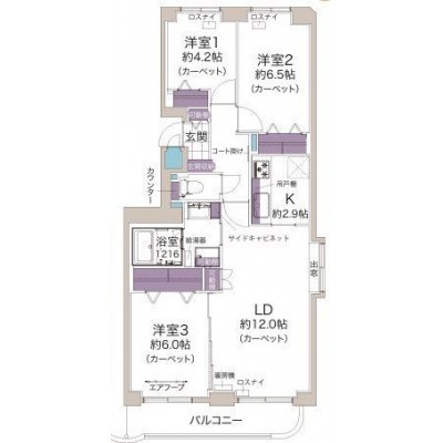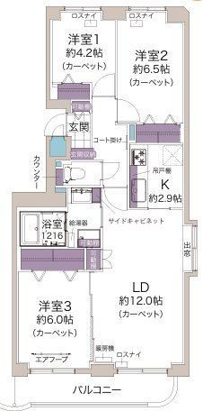 3LDK(70.87m²)└ LD K 洋室 洋室 洋室