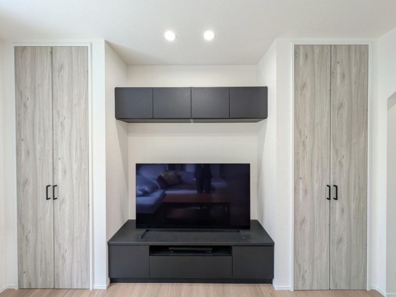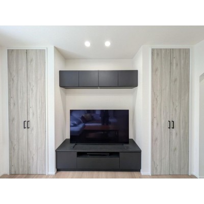 TVボード付き◎両サイドにはたっぷり入る収納庫が見せない収納…