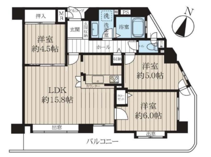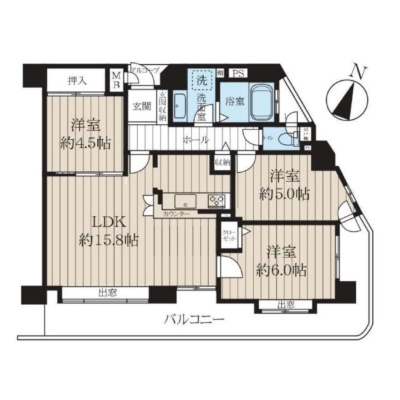 3LDK(70.02m²)└ LDK15.8帖 洋室6帖 洋室5帖 洋室4.5帖