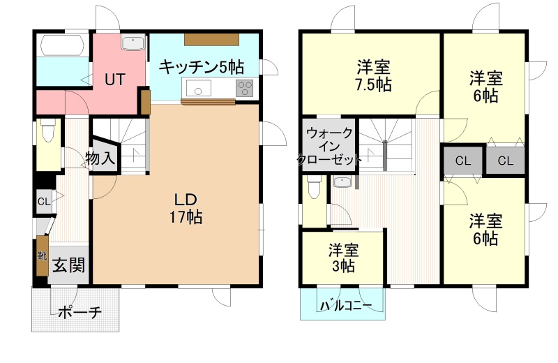 | 間取り | 4LDK1階:LD17帖 K5帖 洋室7.5帖 / 2階:洋室6帖 洋室6帖 洋室3帖 |