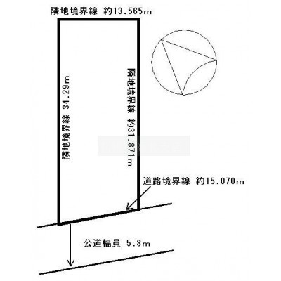総区画数-/- 接道状況 - 接道状況:一方道路 接道1:公道、南、幅員5.8m、接面15.0m