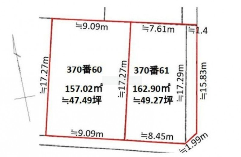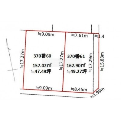 総区画数-/全1区画 接道状況 - 接道状況:二方道路 接道1:公道、南、幅員6.0m、接面17.5m 接道2:公道、東、幅員8.0m、接面15.8m