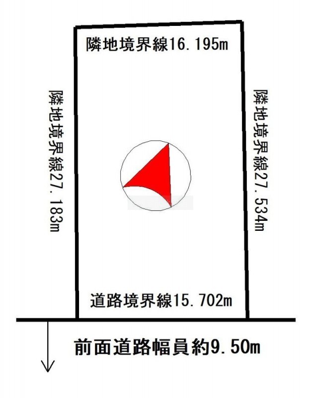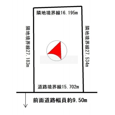 総区画数-/- 接道状況 - 接道状況:一方道路 接道1:公道、南、幅員9.5m、接面15.7m