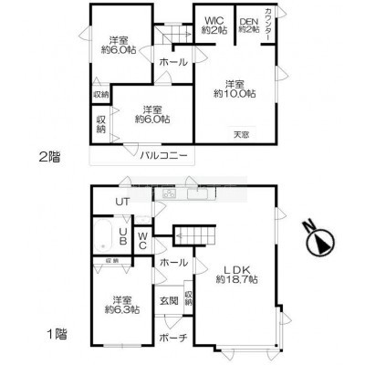 土地面積207.74m2、延床面積107.64m2、LDK18帖以上の4SSLDK