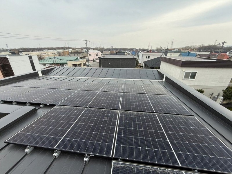 屋根には太陽光パネル設置済み