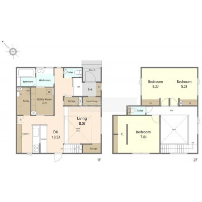 2階洋室は将来2部屋に変更することが可能です。