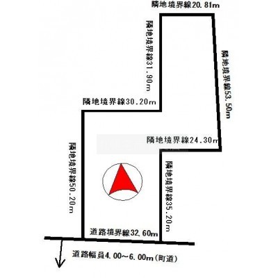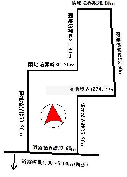 総区画数-/全1区画 接道状況 - 接道状況:一方道路 接道1:公道、南、幅員6.0m、接面32.6m