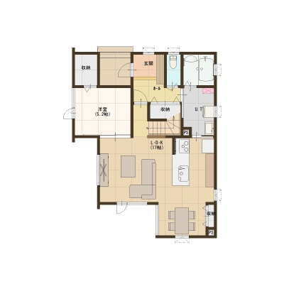 | 間取り | 4LDK1階:LD13.2帖 K3.7帖 洋室5.2帖 / 2階:洋室8.7帖 洋室6帖 洋室5.2帖 |