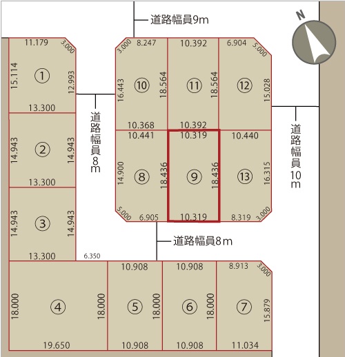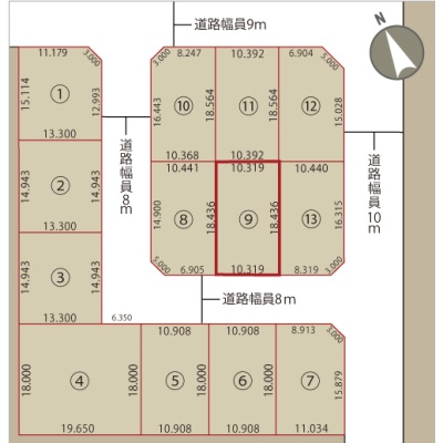 総区画数1区画/全13区画 接道状況 一方 - 南西側幅8.00mの公道に10.30m接道