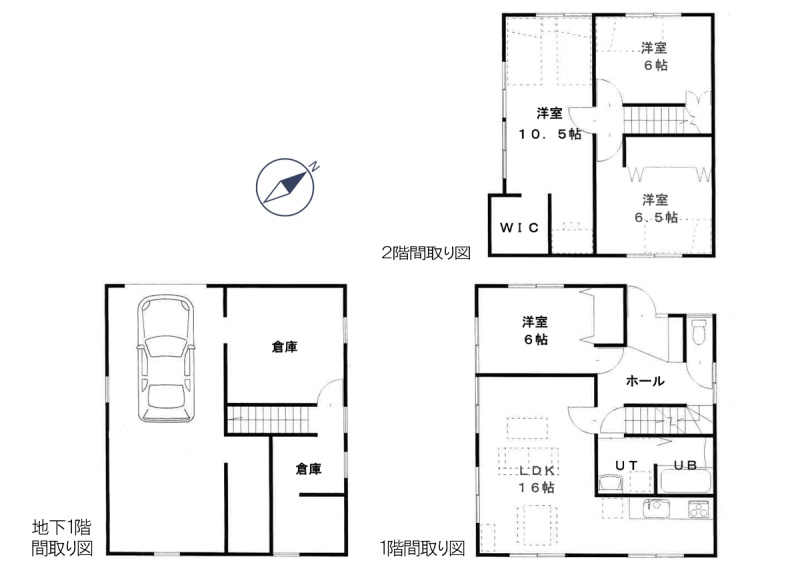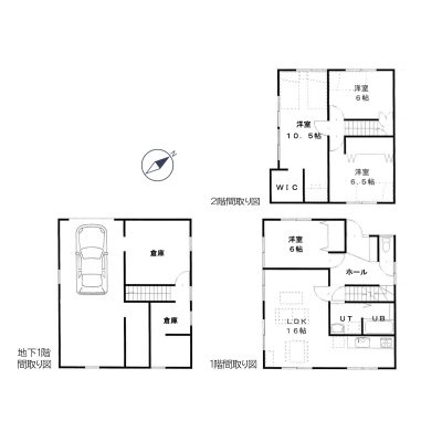| 間取り | 4LDK1階:LDK16帖 洋室6帖 / 2階:洋室10.5帖 洋室6.5帖 洋室6帖 |
