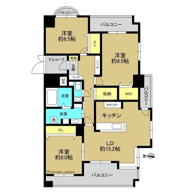 3LDK(95.08m²)└ LDK18.3帖 洋室8.5帖 洋室6.5帖 洋室6帖