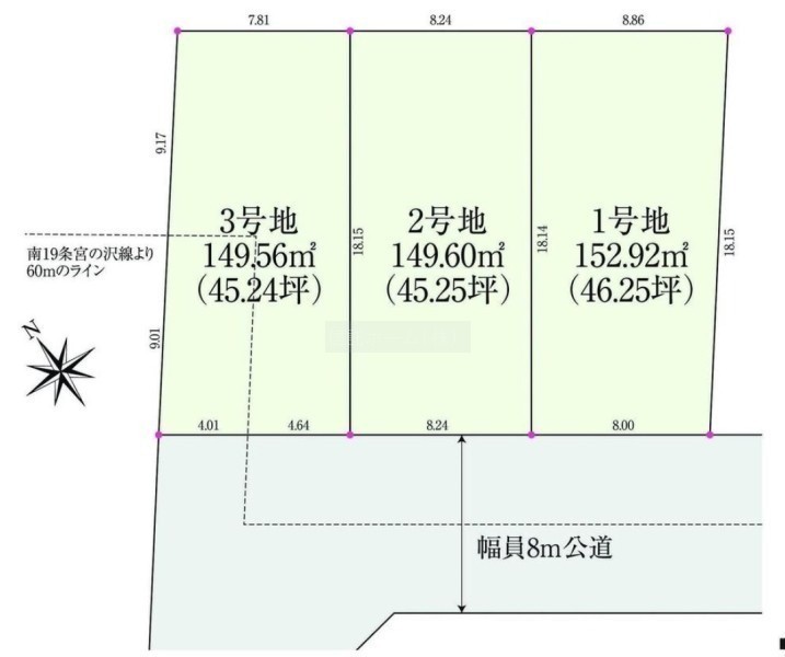 ここに注目!暮らしやすさと利便性を備えた西野エリアに、南西向きの整形地! ■前面8m公道に面した陽当たりの良い整形地(約45坪) ■建築条件付き分譲地/全3区画・販売中! ■小学校・中学校・保育園・コンビニ徒歩圏、子育て世代におすすめ ■地下鉄「宮の沢」駅まで徒歩24分、閑静な住宅街