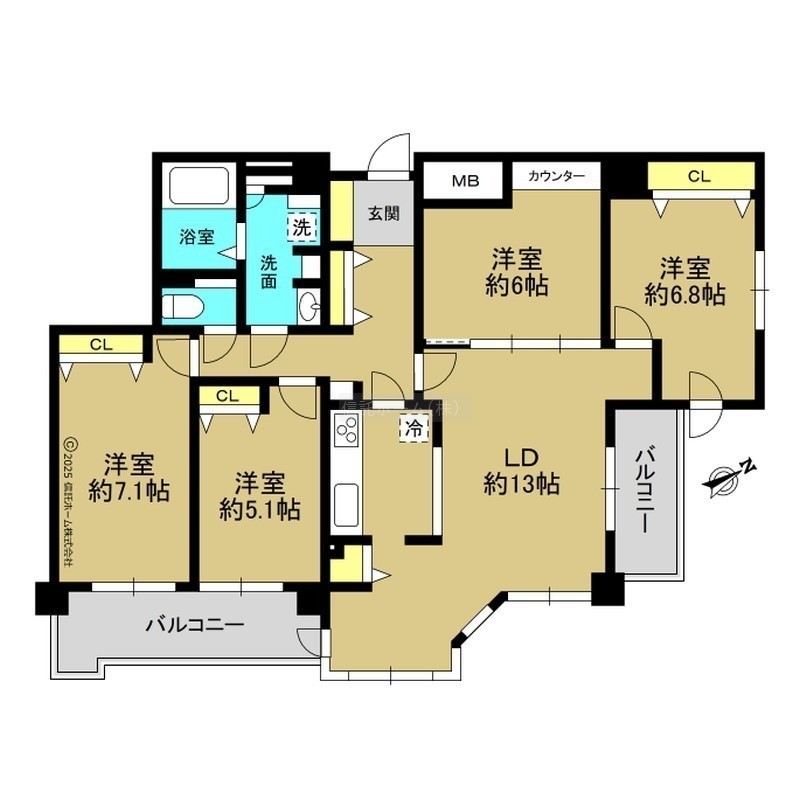4LDK(94.65m²)└ LDK16.4帖 洋室7.1帖 洋室6.8帖 洋室6帖 洋室5.1帖