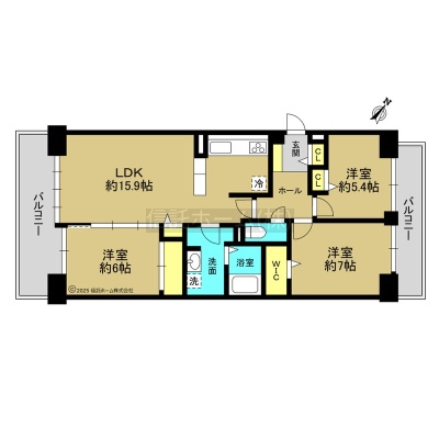 3LDK(75.35m²)└ LDK15.9帖 洋室7帖 洋室6帖 洋室5.4帖