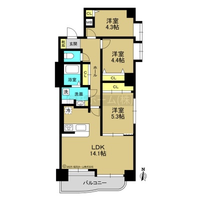 3LDK(71.08m²)└ LDK14.1帖 洋室5.3帖 洋室4.4帖 洋室4.3帖