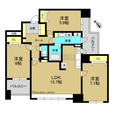 3LDK(79.38m²)└ LDK15.7帖 洋室7.1帖 洋室6帖 洋室5.9帖