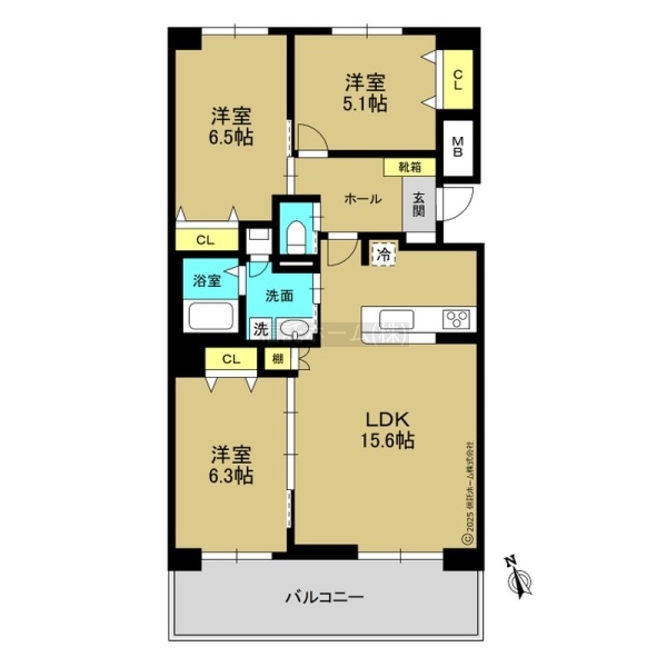 3LDK(13.3m²)└ LDK15.6帖 洋室6.5帖 洋室6.3帖 洋室5.1帖