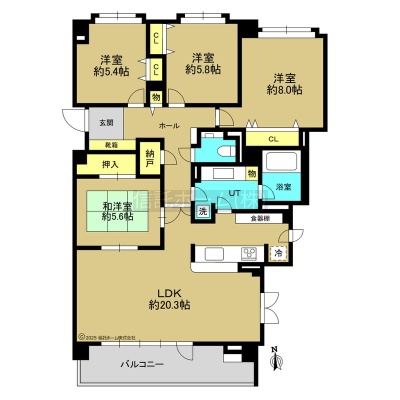 4LDK(103.41m²)└ LDK20.3帖 洋室8帖 洋室5.8帖 洋室5.4帖 和室5.6帖