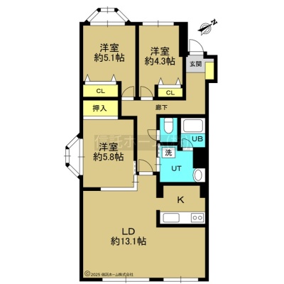 3LDK(76.72m²)└ LDK13.1帖 洋室5.8帖 洋室5.1帖 洋室4.3帖