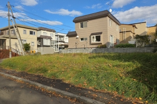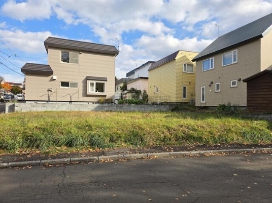 ここに注目!陽あたる北西角地×建築条件なし 簾舞の平坦地に理想のマイホームを ■建築条件なしの自由設計用地 ■土地面積186.22㎡(約56坪)でゆとりの敷地 ■西・北の二方公道に面し、開放感と採光良好 ■バス停「東簾舞」徒歩3分(約210m)で通勤・通学も便利