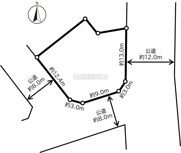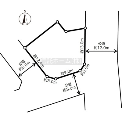 - 南西側幅8.00mの公道に12.40m接道