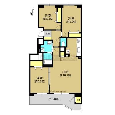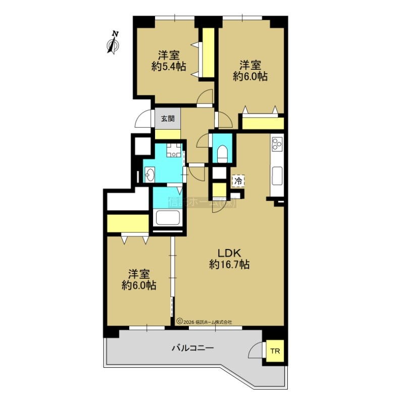 3LDK(74.28m²)└ LDK16.7帖 洋室6帖 洋室6帖 洋室5.4帖