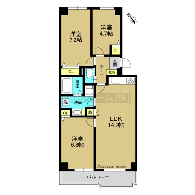 3LDK(71.04m²)└ LDK14.3帖 洋室7.2帖 洋室6.8帖 洋室4.7帖
