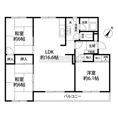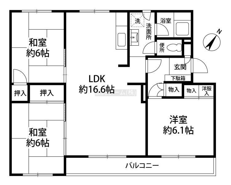 3LDK(75.32m²)└ LDK16.6帖 洋室6.1帖 和室6帖 和室6帖
