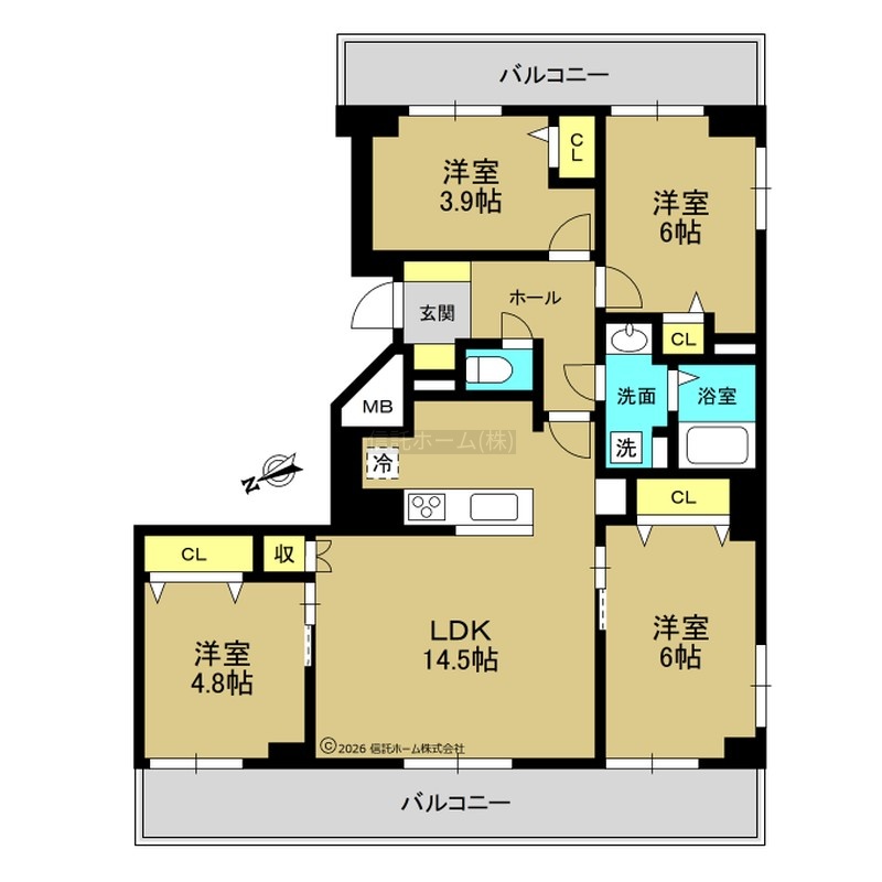 4LDK(75.09m²)└ LDK14.5帖 洋室6帖 洋室6帖 洋室4.8帖 洋室3.9帖