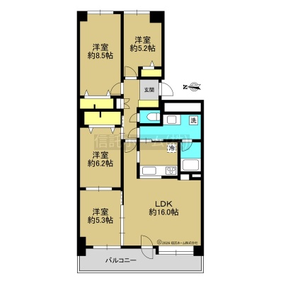 4LDK(91.66m²)└ LDK16帖 洋室8.5帖 洋室6.2帖 洋室5.3帖 洋室5.2帖