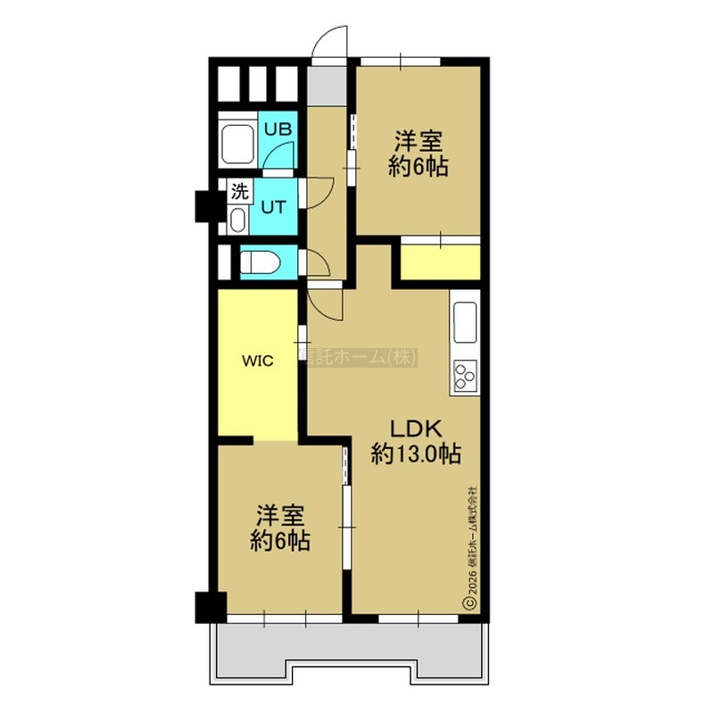 2LDK(63.8m²)└ LDK13帖 洋室6帖 洋室6帖