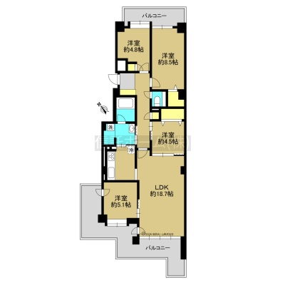 4LDK(93.85m²)└ LDK18.7帖 洋室8.5帖 洋室51帖 洋室4.8帖 洋室4.5帖