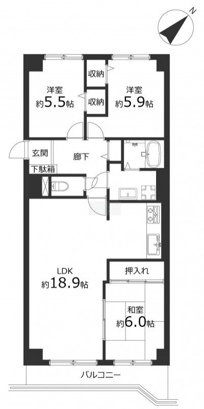 3LDK(78m²)└ LDK18.9帖 和室6帖 洋室5.5帖