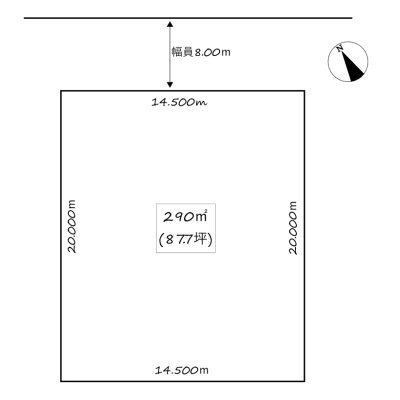 総区画数-/- 接道状況 一方 - 北東側幅8.00mの公道に14.50m接道 位置指定:無