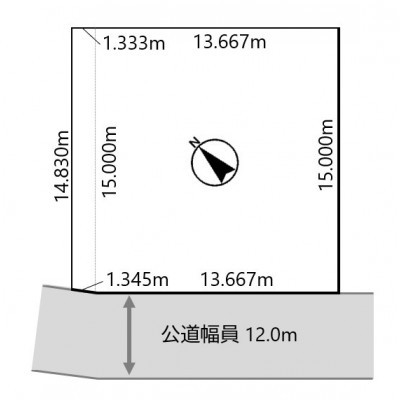 総区画数-/- 接道状況 一方 - 南西側幅12.00mの公道に15.00m接道
