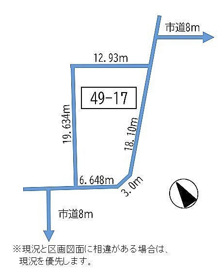 - 南西側幅8.00mの公道に6.64m接道 位置指定:無