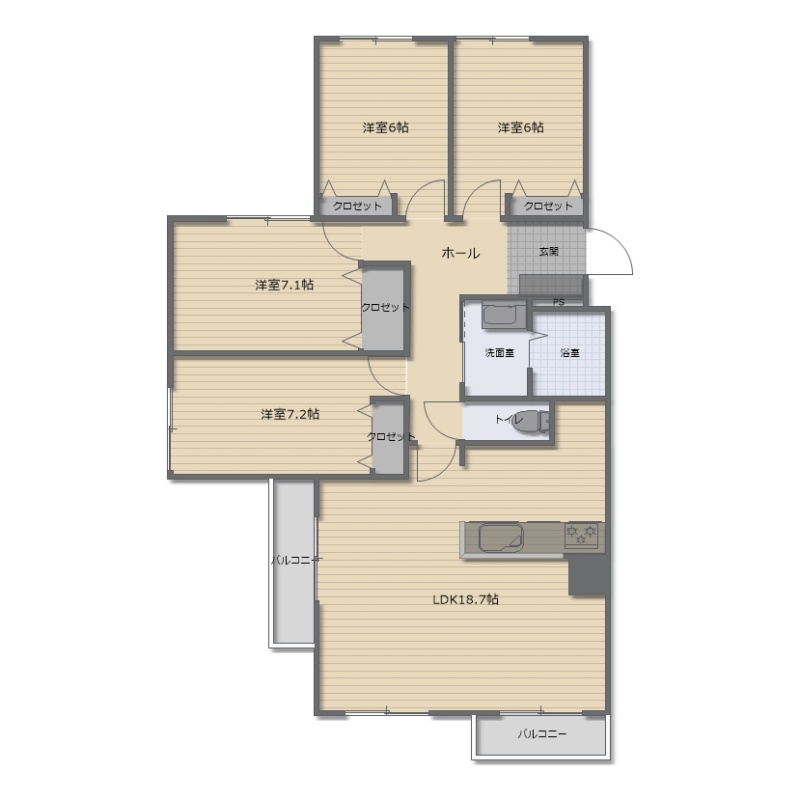 4LDK(94.86m²)└ LDK18.7帖 洋室7.2帖 洋室7.1帖 洋室6帖 洋室6帖