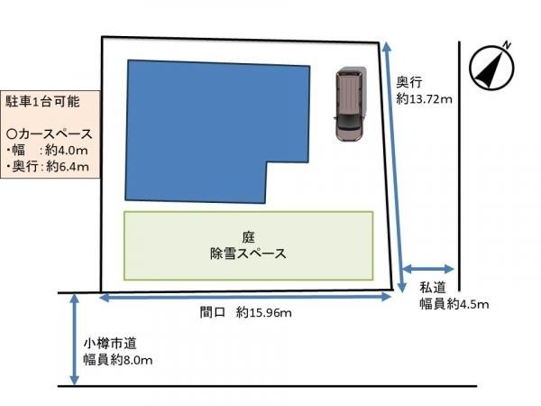 【前面道路】南側道路は小樽市道で幅員約8.0m、北側道路は幅