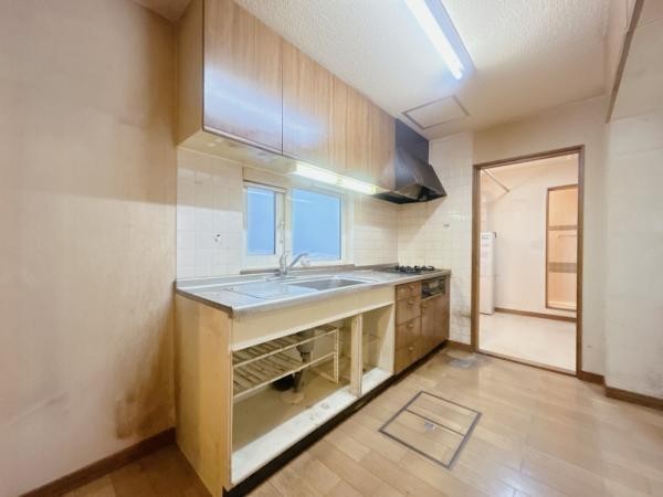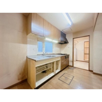 【現況販売】キッチンです。キッチンにはガスコンロが設置されて