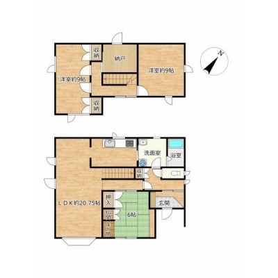【間取り図】LDK20.75帖、3SLDKです。各居室6帖以