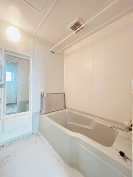 【現況写真】浴室の写真です。1坪の広々した浴槽で、足を伸ばし