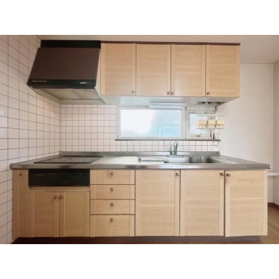 【現況写真】システムキッチンの写真です。収納は引き出し式で、
