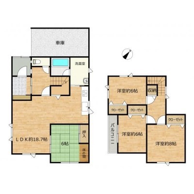 【間取り図】間取りは4LDKの二階建てです。1階に和室1部屋