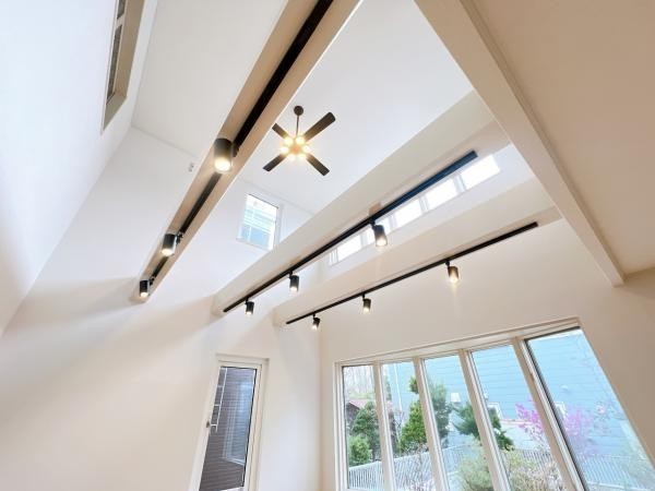 【リフォーム済_リビング】吹き抜けには電気付のシーリングファ