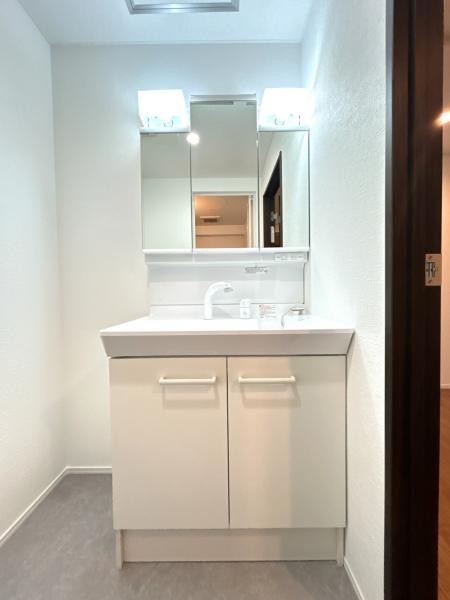 【リフォーム後_洗面台】洗面化粧台は3面鏡のものに新品交換し