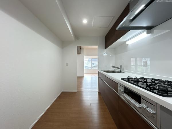 【リフォーム後_キッチン】キッチンの別角度の写真です。新品の