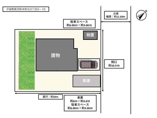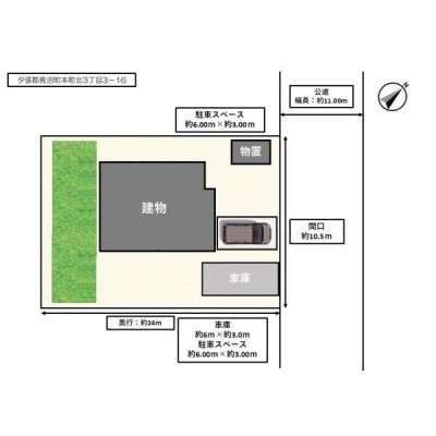 【敷地配置図】駐車1台、車庫に1台駐車可能です