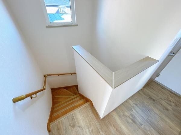 【リフォーム中 2階廊下】階段の吹き抜けには窓がついているた